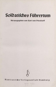 Soldatisches Führertum (Hamburg, 1937?) – siódmy tom dziesięciotomowego kompendium wiedzy, zawierającego biografie pruskich generałów, którego autorem jest pruski major, prywatny doradca, historyk wojskowości Wilhelm Werner Kurt von Priesdorff (1881-1967). W latach 1937-1942 Hanseatische Verlagsanstalt Hamburg opublikowało 10 z 15 tomów zaplanowanych przez Priesdorffa w serii Soldatisches Führertum. Rękopisy tomów 11 i 12 były już gotowe i zostały wysłane przez wydawnictwo hamburskie do drukarni w Lipsku w czasie II wojny światowej, ale tam zostały zniszczone w wyniku bombardowania. Zachowało się tylko kilka odbitek szczotkowych z obu tomów, które Priesdorff trzymał w domu, oraz rękopisy tomów od 13 do 15. Od czasu nalotu na Poczdam w kwietniu 1945 roku, który doszczętnie zniszczył akta personalne Archiwum Armii Pruskiej, materiały Priesdorffa stały się najważniejszym źródłem danych personalnych pruskich generałów. Wkrótce po drugiej wojnie światowej ocalałe rękopisy trafiły do Tajnego Archiwum Państwowego w Berlinie-Dahlem. Biografie około 1300 pruskich generałów z lat 1908-1918 chciano udostępnić publicznie. Nawiązano kontakty z wydawcą i znaleziono nowego redaktora w osobie pisarza wojskowego Hannsa Möllera-Wittena. Jednak kiedy zmarł w 1966 roku, publikacja nowej serii Neuen Reihe Soldatisches Führertum, jak miała nazywać się kontynuacja, ostatecznie zakończyła się fiaskiem. Siódmy tom Soldatisches Führertum zawiera biografie pruskich generałów z okresu 1813-1820. Tom uzupełniają liczne ilustracje portretowe.
