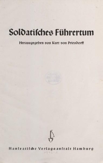 Soldatisches Führertum (Hamburg, 1942?) – kolejna kontynuacja dziesiątego tomu dziesięciotomowego kompendium wiedzy, zawierającego biografie pruskich generałów, którego autorem jest pruski major, prywatny doradca, historyk wojskowości Wilhelm Werner Kurt von Priesdorff (1881-1967). W latach 1937-1942 Hanseatische Verlagsanstalt Hamburg opublikowało 10 z 15 tomów zaplanowanych przez Priesdorffa w serii Soldatisches Führertum. Rękopisy tomów 11 i 12 były już gotowe i zostały wysłane przez wydawnictwo hamburskie do drukarni w Lipsku w czasie II wojny światowej, ale tam zostały zniszczone w wyniku bombardowania. Zachowało się tylko kilka odbitek szczotkowych z obu tomów, które Priesdorff trzymał w domu, oraz rękopisy tomów od 13 do 15. Od czasu nalotu na Poczdam w kwietniu 1945 roku, który doszczętnie zniszczył akta personalne Archiwum Armii Pruskiej, materiały Priesdorffa stały się najważniejszym źródłem danych personalnych pruskich generałów. Wkrótce po drugiej wojnie światowej ocalałe rękopisy trafiły do Tajnego Archiwum Państwowego w Berlinie-Dahlem. Biografie około 1300 pruskich generałów z lat 1908-1918 chciano udostępnić publicznie. Nawiązano kontakty z wydawcą i znaleziono nowego redaktora w osobie pisarza wojskowego Hannsa Möllera-Wittena. Jednak kiedy zmarł w 1966 roku, publikacja nowej serii Neuen Reihe Soldatisches Führertum, jak miała nazywać się kontynuacja, ostatecznie zakończyła się fiaskiem. Dziesiąty tom Soldatisches Führertum zawiera biografie pruskich generałów od 1858 roku, kiedy regentem Prus, w zastępstwie chorego psychicznie brata Fryderyka Wilhelma IV został ustanowiony Wilhelm I Hohenzollern do powstania w 1867 roku Związku Północnoniemieckiego (na początku był to związek wojskowy, a od 1 lipca 1867 państwo federalne). Tom uzupełniają liczne ilustracje portretowe.