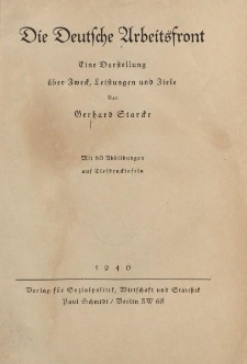 | 1940, Starcke, Gerhard, Die Deutsche Arbeitsfront. Eine Darstellung über Zweck, Leistungen und Ziele | 9 lis 2023 |