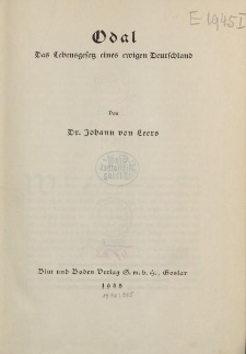 | 1935, Leers, Johann von, Odal. Das Lebensgesetz eines ewigen Deutschland | Nov 16, 2023 |