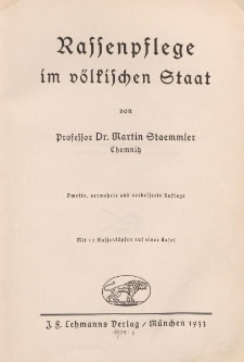 | 1933, Staemmler, Martin, Rassenpflege im völkischen Staat | 15 lis 2023 |