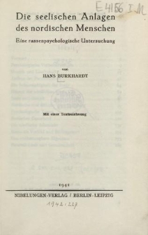| 1941, Burkhardt, Hans, Die seelischen Anlagen des nordischen Menschen. Eine rassenpsychologische Untersuchung | Jan 11, 2024 |