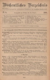 | 1900-08-23, Wöchentliches Verzeichnis der erschienenen und der vorbereiteten Neuigkeiten des deutschen Buchhandels.No. 34 | 10 cze 2024 |