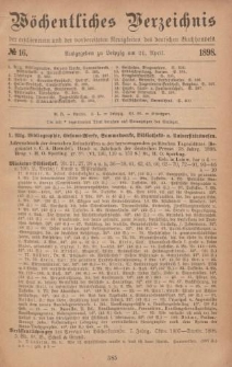 | 1898-04-21, Wöchentliches Verzeichnis der erschienenen und der vorbereiteten Neuigkeiten des deutschen Buchhandels. No.16 | 10 cze 2024 |