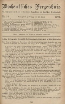 | 1904-06-23, Wöchentliches Verzeichnis der erschienenen und der vorbereiteten Neuigkeiten des deutschen Buchhandels. No.25 | 10 cze 2024 |