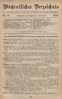 | 1906-09-06, Wöchentliches Verzeichnis der erschienenen und der vorbereiteten Neuigkeiten des deutschen Buchhandels. No.36 | 10 cze 2024 |