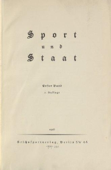 Sport und Staat (Berlin, 1936) - bogato ilustrowany pierwszy tom propagandowej publikacji dotyczącej historii sportu oraz miejsca i roli ćwiczeń fizycznych i szeroko pojętej kultury fizycznej w nazistowskich Niemczech i procesie nazistowskiej indoktrynacji niemieckiego społeczeństwa. Zgodnie z założeniami książka miała ukazać się w czterech tomach i stanowić przewodnik opisujący rozwój i zadania kultury fizycznej do 1936 roku, łącznie z opisem organizacji i przebiegu letnich Igrzysk Olimpijskich w Berlinie. Ostatecznie publikacja ukazała się w dwóch tomach, opisując z perspektywy reżimu nazistowskiego rozwój kultury fizycznej i sportu od czasów najdawniejszych. Hitler bardzo wcześnie przyznał sportowi eksponowane miejsce w III Rzeszy. Już 7 lat przed Machtergreifung Hitler kreślił wizje totalitarnego wychowania młodzieży. Zakładały one wybitny prymat ideologii i sprawności fizycznej nad kształceniem duchowych wartości, wiedzy i postaw obywatelskich. Sport uprawiany w Niemczech przed 1933 r. Hitler odrzucał, poddając go druzgocącej krytyce, podobnie jak cały „system” Republiki Weimarskiej. Rzucał radykalne wyzwanie przez żądanie uprawiania sportu tak w szkole, jak i w narodowosocjalistycznych instytucjach wychowawczych i uczynienia zeń skutecznego instrumentu budowy nowych Niemiec Według niego państwo powinno przejąć troskę o fizyczne wychowanie swoich obywateli, bowiem wartością dla Volksgemeinschaft był zdrowy fizycznie człowiek z silnym charakterem. Sport w III Rzeszy od 1933 r. podążał przede wszystkim za zasadami rasy, wspólnoty narodu, wodzostwa i honoru. Dokonywała się instrumentalizacja sportu w państwie totalitarnym. Prymat nadano ideologii i kultowi surowej, rasowo-narodowej manifestacji męskiej siły. Szczególne miejsce w realizacji „ sportowych” wizji Hitlera zajmował współtwórca niniejszej publikacji Alfred Baeumler (1887-1968) - jeden z głównych ideologów nazizmu, naczelny pedagog III Rzeszy, który wieścił nadejście nowej ery kultury i kultu siły, dominacji zbiorowości, nakazu permanentnego kształcenia przez obywatela sprawności sportowej i tężyzny cielesnej. Obok Baeumlera, współautorami niniejszego tomu byli: niemiecki archeolog Wilhelm von Masoww (1891-1949), Martin Vogt oraz Heinz Wetzel.