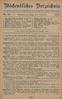 | 1908-09-03, Wöchentliches Verzeichnis der erschienenen und der vorbereiteten Neuigkeiten des deutschen Buchhandels. No.36 | 26 cze 2024 |
