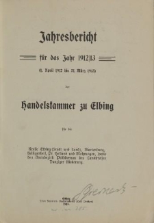 | 1913, Jahresbericht für das Jahr 1912/13 (1. April 1912 bis 31. März 1913) der Handelskammer zu Elbing […] | 23 paź 2024 |