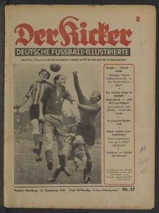 Niemiecki magazyn sportowy, tematycznie związany głównie z piłką nożną. Magazyn został założony w Konstancji przez Walthera Bensemanna (1873-1934), który był pionierem piłki nożnej. Bensemann odegrał kluczową rolę w założeniu Karlsruher FV, jednego z pierwszych mistrzowskich klubów w Niemczech. Był także zaangażowany w utworzenie Frankfurter Kickers, który później przekształcił się w Eintracht Frankfurt. W 1900 roku był jednym z założycieli Niemieckiego Związku Piłki Nożnej. Postrzegał piłkę nożną jako środek porozumienia międzynarodowego, dlatego zaczął organizować mecze międzynarodowe. Działania te doprowadziły m.in. do rozegrania pięciu historycznych meczów pomiędzy selekcjonerami z Niemiec i Anglii pomiędzy 1899 r. i 1901 r., które choć nie mają żadnego oficjalnego statusu, to uważane są za historycznie pierwsze międzynarodowe mecze którejkolwiek drużyny narodowej Niemiec. Pierwszy numer czasopisma ukazał się 14 lipca 1920 roku. Magazyn wkrótce przekształcił się w wiodący niemiecki magazyn piłkarski. Siedziby redakcji mieściły się kolejno w Stuttgarcie (od 1921 r.) i Ludwigshafen am Rhein (od 1925 r.). Następnie redakcja została przeniesiona na stałe do Norymbergi, gdzie gazeta ukazywała się co tydzień od 1 października 1926 roku. W 1933 r. nazistowski Machtergreifung w Niemczech zmusił Bensemanna, który był Żydem, do przeniesienia się do Montreux w Szwajcarii, gdzie wkrótce zmarł. Następcą Bensemanna na stanowisku redaktora naczelnego „Kickera” został Hanns Jakob Müllenbach (1903–1944), który był związany z redakcją od samego początku i pracował nad pierwszym numerem już w 1920 roku. Wiele źródeł wskazuje, jak szybko w czasach narodowego socjalizmu kosmopolityczny „Kicker” przerodził się w medium ideologicznej propagandy. Müllenbach, przez wiele lat wspierany przez Bensemanna szybko przekształcił „Kickera” z gazety demokratyczno-pacyfistycznej w czasopismo nazistowskie. W gazecie obok reportaży poświęconych piłce nożnej pojawiały się radosne teksty o marszach SA w Norymberdze. W czasie II wojny światowej, od kwietnia 1943 r. gazeta została połączona z innym czasopismem sportowym „Fußball” i odtąd ukazywała się już tylko w trybie dwutygodnika. Po numerze z 26 września 1944 r. (nr 20/1944) całkowicie wstrzymano wydawanie czasopisma. Lokalizacja oryginału - w zbiorach prywatnych Artura Jaroszewskiego.
