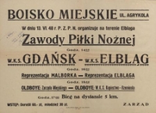 | 1948, Afisz informujący o organizowanych w dniu 13 czerwca 1948 roku zawodach piłki nożnej w Elblągu | 23 paź 2024 |