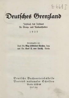 Deutsches Grenzland. Jahrbuch des Instituts für Grenz- und Auslandstudien - bogato ilustrowany rocznik, organ wydawniczy założonego w 1925 roku w Berlinie Institut für Grenz- und Auslandsstudien, wydawany przez publicystę i socjologa Maxa Hildeberta Boehma (1891-1968) i niemieckiego profesora uniwersyteckiego i etnologa Karla Christian von Loescha (1880-1951). Tematyka rocznika dotykała szeroko pojętej kwestii niemieckich kresów i pogranicza niemieckiego oraz terytoriów i ludności, które z różnych przyczyn znalazły się poza granicami Cesarstwa Niemieckiego (m.in. wskutek przyjętych, ale w istocie kontestowanych postanowień traktatu wersalskiego). Według wspomnianego wyżej Maxa Hildeberta Boehma „Pogranicze jest wszędzie tam, gdzie Niemcy fizycznie doświadczają granicznego losu, gdzie walczą o połączenie ze wspólnotą narodową lub gdzie naród merytorycznie walczy, może walczyć i musi walczyć o swoje włączenie i utrzymanie…”. Bibliteka Elbląska posiada wswoich zbiorach egzemlarze wydane w latach 1934-1935.