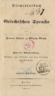 Elementarbuch der Griechischen Sprache (Halle, 1844) - druga część XIX-wiecznego podręcznika do nauki języka greckiego dla Niemców, w opracowaniu Hermanna Schmidta i Wilhelma Wenscha. Opracowanie zawiera zbiór tekstów w języku niemieckim do tłumaczenia na język grecki i tym samym stanowi praktyczny klucz do poprawy i rozwijania umiejętności konwersacyjnych uczniów.