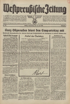 Westpreussische Zeitung - 01.11.1933 r. ukazał się pierwszy numer będącej ze względów propagandowych organem NSDAP w tzw. Okręgu Prusy Zachodnie, tj. na terenie Powiśla. Pierwsze miesiące wskazywały na prenumeratę 3000 do 4000 osób. W następnych latach liczba czytelników prenumerujących wykazywała tendencję rosnącą. W 1936 r. osiągnęła 15 000 osób czytających. Rok 1939 – to nakład prawie 24 000 i ustępował tylko „Elbinger Zeitung”. Mimo wysiłków nie udało się uzyskać miana największej gazety Elbląga, na co decydujący wpływ miało niezbyt atrakcyjne jej redagowanie. Gazeta była przez lokalne władze dość wyraźnie faworyzowana. Niestety następowała duża rotacja osób decydujących o profilu ideowym i poziomie pisma. Pierwszym naczelnym redaktorem został Hermann Jungreuthmayer, jego następcami byli Robert Burnus, Horst Düring, Reinhard Thimm. W ostatnim okresie istnienia pismem kierował Carl-Hermann Vogt. Trudności wojenne i restrykcje w dostawach papieru dały się odczuć na elbląskim rynku prasowym. Od 01.04.1943 r. zamiast „Elbinger Zeitung” oraz „Westpreussische Zeitung” zaczęło ukazywać się już tylko jedno pismo o nazwie „Neue Elbinger Zeitung” (którą zaprzestano wydawać w pierwszych dniach lutego 1945 roku).