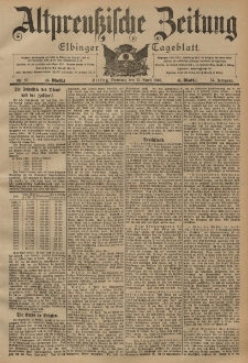 „Altpreussische Zeitung und Anzeiger für Stadt und Land” była organem elbląskich demokratów. Gazeta liczyła 4 strony, a ukazywała się od poniedziałku do niedzieli, nakład osiągnął 11000 egzemplarzy. Zamieszczała aktualne informacje ze świata i wiadomości lokalne oraz informacje z Malborka i Ostródy, gdzie posiadała swoje filie. Ważną stroną gazety były reklamy, zapowiedzi teatralne i koncertów muzycznych. Raz w tygodniu ukazywał się dodatek specjalny m.i. : Der hausfreund. Tägliche Beilage zur „Altpreussischen Zeitung” ; "Tägliche Unterhaltungsbeilage", w którym zamieszczano zapowiedzi literackie i powieści w odcinkach. (Gazeta zmieniała swoją nazwę – np. od nr 297/1895 r. zmienia nazwę na „Altpreußische Zeitung : Elbinger Tageblatt”).