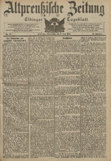 | 1904-06-02, Altpreussische Zeitung, Nr. 127 Donnerstag 2 Juni 1904, 56. Jahrgang | Oct 14, 2020 |