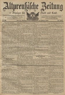 | 1889-02-12, Altpreussische Zeitung, Nr. 36 Dienstag 12 Februar 1889, 41. Jahrgang | Dec 8, 2021 |