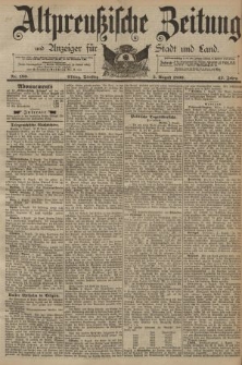 | 1890-08-05, Altpreussische Zeitung, Nr. 180 Dienstag 5 August 1890, 42. Jahrgang | Dec 7, 2021 |
