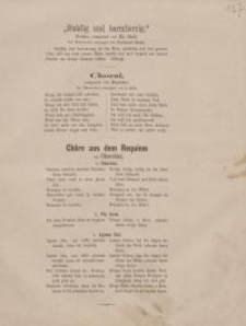 Teksty trzech utworów wokalnych o tematyce religijnej :motetu E. Grell'a, chorału Hasslera oraz chóru z "Requiem" Cherubiniego.