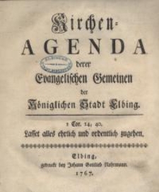 Title: Kirchen-Agenda derer Evangelischen Gemeinen der Königlichen Stadt Elbing