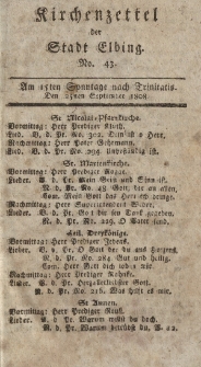 Od 7 września 1778 r. Friedrich Traugott Hartmann zaczął wydawać kolejne pismo w Elblągu : „Kirchenzettel der Stadt Elbing”. Początkowo ukazywały się w nim w nim ogłoszenia o porządku niedzielnych nabożeństw kościelnych, z czasem zamieszczano także kazania, teksty pieśni które miały być śpiewane w kościołach luterańskich i zapowiedzi przedślubne. Pismo ukazywało się raz w tygodniu, liczyło 4 strony i cieszyło się wśród mieszkańców Elbląga sporym powodzeniem. W latach 1827-29 zmieniło swoją nazwę na Kirchen=, Addreß= und Intelligenz= Zettel der Stadt Elbing. Zaprzestano je wydawać w 1829 roku. Biblioteka Elbląska w swoich zbiorach posiada 20 roczników z lat 1799-1828 ( niekompletne).