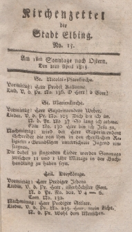 Od 7 września 1778 r. Friedrich Traugott Hartmann zaczął wydawać kolejne pismo w Elblągu : „Kirchenzettel der Stadt Elbing”. Początkowo ukazywały się w nim w nim ogłoszenia o porządku niedzielnych nabożeństw kościelnych, z czasem zamieszczano także kazania, teksty pieśni które miały być śpiewane w kościołach luterańskich i zapowiedzi przedślubne. Pismo ukazywało się raz w tygodniu, liczyło 4 strony i cieszyło się wśród mieszkańców Elbląga sporym powodzeniem. W latach 1827-29 zmieniło swoją nazwę na Kirchen=, Addreß= und Intelligenz= Zettel der Stadt Elbing. Zaprzestano je wydawać w 1829 roku. Biblioteka Elbląska w swoich zbiorach posiada 20 roczników z lat 1799-1828 ( niekompletne).