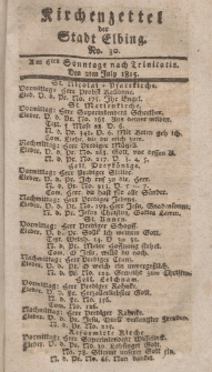Seit dem 7. September 1778 gab Friedrich Traugott Hartmann weitere Elbinger Zeitschrift: Kirchenzettel der Stadt Elbing” heraus. Ursprünglich wurden in die Zeitung Anzeigen betreffs der Gottesdienstordnung in den Elbinger Kirchen gesetzt, im Laufe der Zeit kamen noch Predigten, Aufgebote, Texte der religiösen Lieder dazu. Die Zeitschrift erschien einmal in der Woche, zählte 4 Seiten und war unter den Einwohnern Elbings ziemlich populär. In den Jahren 1827-29 änderte der Titel in Kirchen=, Addreß= und Intelligenz= Zettel der Stadt Elbing ab. Die Zeitschrift hörte 1829 auf zu erscheinen. Elbinger Bibliothek besitzt in ihren Beständen 20 Jahrgänge aus den Jahren 1799-1828 (unvollständig).