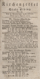 Seit dem 7. September 1778 gab Friedrich Traugott Hartmann weitere Elbinger Zeitschrift: Kirchenzettel der Stadt Elbing” heraus. Ursprünglich wurden in die Zeitung Anzeigen betreffs der Gottesdienstordnung in den Elbinger Kirchen gesetzt, im Laufe der Zeit kamen noch Predigten, Aufgebote, Texte der religiösen Lieder dazu. Die Zeitschrift erschien einmal in der Woche, zählte 4 Seiten und war unter den Einwohnern Elbings ziemlich populär. In den Jahren 1827-29 änderte der Titel in Kirchen=, Addreß= und Intelligenz= Zettel der Stadt Elbing ab. Die Zeitschrift hörte 1829 auf zu erscheinen. Elbinger Bibliothek besitzt in ihren Beständen 20 Jahrgänge aus den Jahren 1799-1828 (unvollständig).