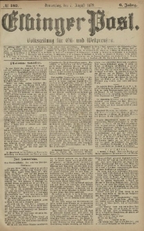 „Elbinger Post”. Gazeta ludowa dla prowincji Prusy. Ukazywała się codziennie z wyjątkiem poniedziałków i dni poświątecznych. Okoliczni czytelnicy mieli możliwość zamówienia prenumeraty. Dziennik czterostronicowy, gdzie na pierwszej stronie zamieszczano przegląd polityczny i wiadomości z kraju i ze świata. Wydawca starał się umieszczać artykuł wstępny, poniżej artykuły dotyczące np. wystaw światowych, historii cygar, introligatorstwa, poglądów na małżeństwo, wrażeń z podróży zagranicznych (artykuły dostarczane od korespondentów oraz osób prywatnych), zamieszczane były również wiersze . Na drugiej stronie informacje z Niemiec, wiadomości o obradach parlamentarnych oraz teść telegramów wysyłanych do redakcji o najświeższych wydarzeniach. Strona trzecia poświęcona była zagadnieniom z prowincji (Gdańsk, Toruń, Grudziądz, Pasłęk, Tczew). Ostatnią stronę zajmowały ogłoszenia i reklamy, spora część adresowana była do rolników i hodowców, znajdowały się ogłoszenia z zapowiedziami kulturalnymi (spektakle teatralne, występy gościnne), ogłoszenia drobne i anonse (inseraty). Do niektórych numerów ukazywały się dodatki (Beilage). Dziennik ukazywał się w układzie trzykolumnowym, wydawany w elbląskiej drukarni Neumann-Hartmann przez właścicieli m.in. Edwarda Schlömpa czy później Theodora Mohr’a (od nr 85 roku 1875). Dziennik posiada pieczątki własnościowe Heinricha Wiedwalda.