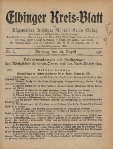 Tytuł: Kreis-Blatt des Königlich Preußischen Landraths-Amtes zu Elbing, Nr. 71 Dienstag 30 August 1910