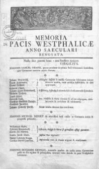 | Hoffmann Joannes Daniel, 1748, Memoria Pacis Westphalicea anno Saeculari renovata | 8 paź 2018 |