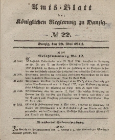 Title: Amts-Blatt der Königlichen Regierung zu Danzig, 29. Mai 1844, Nr. 22