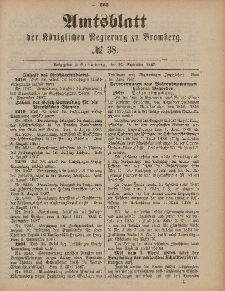 | 1887-09-23, Amtsblatt der Königlichen Preußischen Regierung zu Bromberg, 23. September 1887, Nr. 38 | Dec 12, 2018 |