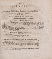 | 1824-09-15, Amts-Blatt der Königlichen Preußischen Regierung zu Königsberg, Mittwoch, 15. September 1824, Nr. 39 | 20 gru 2018 |