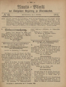 Title: Amts-Blatt der Königlichen Regierung zu Marienwerder, 5. November 1902, No. 45.
