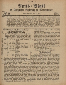 | 1904-05-25, Amts-Blatt der Königlichen Regierung zu Marienwerder, 25. Mai 1904, No. 21. | Dec 21, 2018 |