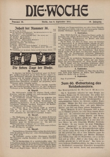 Title: Die Woche : Moderne illustrierte Zeitschrift, 19. Jahrgang, 8. September 1917, Nr 36