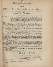 | 1867-08-03, Gesetz-Sammlung für die Königlichen Preussischen Staaten, 3. August, 1867, nr.70. | Dec 27, 2018 |