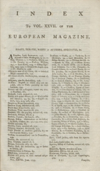 Title: Index: The European Magazine. Vol. XXVII, 1795