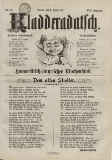 Deutsche illustrierte politisch-satirische Wochenzeitschrift, die 1848-1944 erschien. Gegründet wurde die Zeitschrift von David Kalisch – einem Berliner Possenverfasser und herausgegeben durch A. Hofmann u. Komp-Verlag. Mit der Zeitschrift arbeiteten u. a. der berühmte Zeichner W. Scholz zusammen, deren Karikaturen von Napoleon III. und Bismarck große Popularität erlangten. „Kladderdatsch“ war eine der wenigen Zeitschriften, die als Ergebnis der Vormärzepoche und Revolutionswelle 1848 entstanden und denen es gelungen ist, auch in der Ära der Restauration der alten Ordnung zu überdauern. In der zweiten Hälfte des 19. Jahrhunderts war „Kladderdatsch“ die Lieblingszeitschrift der Berliner Gesellschaft. Elbinger Bibliothek besitzt in ihren Beständen Jahrgänge aus den Jahren 1848-1923 (26 Vol.) (inkomplett)