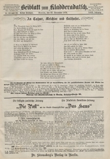 Deutsche illustrierte politisch-satirische Wochenzeitschrift, die 1848-1944 erschien. Gegründet wurde die Zeitschrift von David Kalisch – einem Berliner Possenverfasser und herausgegeben durch A. Hofmann u. Komp-Verlag. Mit der Zeitschrift arbeiteten u. a. der berühmte Zeichner W. Scholz zusammen, deren Karikaturen von Napoleon III. und Bismarck große Popularität erlangten. „Kladderdatsch“ war eine der wenigen Zeitschriften, die als Ergebnis der Vormärzepoche und Revolutionswelle 1848 entstanden und denen es gelungen ist, auch in der Ära der Restauration der alten Ordnung zu überdauern. In der zweiten Hälfte des 19. Jahrhunderts war „Kladderdatsch“ die Lieblingszeitschrift der Berliner Gesellschaft. Elbinger Bibliothek besitzt in ihren Beständen Jahrgänge aus den Jahren 1848-1923 (26 Vol.) (inkomplett)