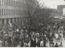Biblioteka Elbląska w swoich zbiorach Dokumentów Życia Społecznego posiada różne kolekcje zdjęć, m.in. z obchodów, uroczystości, spotkań autorskich, wystaw oraz innych ważnych wydarzeń, mających miejsce w regionie elbląskim.Jedna z kolekcji to zdjęcia prezentujące demonstracje w stanie wojennym, wiece i spotkania pod Pomnikiem Poległych Stoczniowców w Gdańsku, zdjęcia przedstawiające demonstracje i przemówienia Lecha Wałęsy. Nadzwyczajny stan wprowadzony 13.12.1981 r. – tzw. stan wojenny spowodował iż na terenie całej Polski organizowano różnego typu akcje świadczące o negatywnym nastawieniu do stanu wojennego, m.in. tworzono ręcznie plakaty, drukowano ulotki, a także manifestowano na ulicach polskich miast.Prezentowane dokumenty pochodzą z archiwum przekazanego w darze Bibliotece Elbląskiej przez NSZZ „Solidarność” Elbląg.
