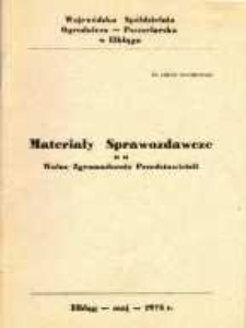 Wojewódzka Spółdzielnia Ogrodniczo-Pszczelarska (WSO-P) w Elblągu wydała w maju 1978 roku komplet materiałów sprawozdawczych dla delegatów na Walne Zgromadzenie Przedstawicieli (WZP). Na okładce wydawnictwa widnieje napis - "Do użytku wewnętrznego", także w przeciwieństwie - rok wcześniej do wydanego druku dla przedstawicieli użyto nazwy - "materiały informacyjne". Dokument wydano jako kserowany w niektórych artykułach numerowany maszynopis. Część opisowa poprzedzielana jest tabelami z danymi. Jak wynika ze strony tytułowej materiały sprawozdawcze pochodzą z 1977 r., ponownie wydrukowano napis - "Do użytku wewnętrznego". W dokumencie brakuje wstępu, a spis rozdziałów liczący siedemnaście występuje w treści sprawozdania. Sprawozdanie Zarządu WSO-P w Elblągu poruszało m.in. stan organizacyjny, działalność samorządową i społeczno-wychowawczą, stan finansowy, wyniki, niedobory, ochronę mienia. Sprawozdanie z realizacji uchwał i wniosków WZP, sprawozdanie z działalności Rady WSO-P, kierunki działania na rok 1978 oraz regulamin WZP znajdowały się na końcu i były ponumerowane. W jednym z artykułów regulaminu WZP dotyczącym wybieralnych komisji podczas obrad, wymieniono ich nazwy - mandatowo-skrótacyjna, wnioskowa, wyborcza ta ostania w regulaminie dalej nazywana była też "matką".