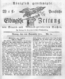 Title: Elbingsche Zeitung, No. 72 Montag, 8 September 1800