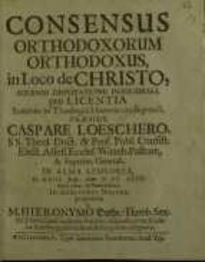 | 1694, Löscher Caspar, Dathe Hieronymus, Consensus orthodoxorum orthodoxus, in loco de Christo ... | Jun 11, 2015 |