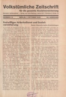 Title: Volkstümliche Zeitschrift für die gesamte Sozialversicherung, 38. Jahrgang, 1932, H. 19