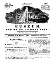 | 1837-04-17, Museum, Blätter für bildende Kunst, Nr. 16, 17 April 1837, 5 Jhrg. | Jun 8, 2016 |
