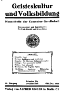 Miesięcznik wydawany przez niemieckie towarzystwo Comenius-Gesellschaft, ukazywał się w latach 1892-1934. Na przestrzeni lat mutacje tytułu: „Monatshefte der Comenius-Gesellschaft für Volkserziehung“, (1909-1919) w latach dwudziestych i trzydziestych XX w. „Geisteskultur. Monatsshefte der Comenius-Gesellschaft”. W niektórych rocznikach brak podziału na zeszyty (miesiące). Redaktorzy: Ludwig Keller (założyciel), następnie Ferdinand Jacob Schmidt, Artur Buchenau. Czasopismo wychodziło początkowo w wydawnictwie Voigtländer’s Verlag, następnie (1909-1919) wydawane było przez Eugena Diederichsa, później przez Walthera de Gruÿter, a w ostatnich latach przez Alfreda Ungera. Czasopismo reprezentowało poglądy towarzystwa, odwołującego się do idei pedagoga, myśliciela i uczonego uniwersalnego Jana Amosa Komeńskiego (Comeniusa) i zgodnie z tą linią usiłowało propagować naukę wolną od politycznych akcentów, w sposób tolerancyjny i niedogmatyczny. Biblioteka Elbląska posiada w swoich zbiorach roczniki: 1892-1907, 1910-1922, 1924-1930, 1932-1934.