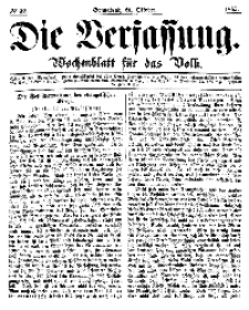 | 1865-10-21, Die Verfassung : Wochenblatt für das Volk, Sonnabend, 21. October, Nr 42, 1865 | Oct 11, 2018 |