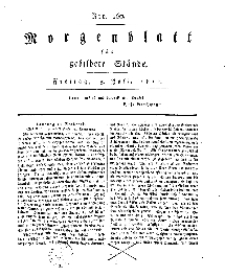 Niemiecki dziewiętnastowieczny dziennik kulturalno-literacki przeznaczony dla „wykształconych czytelników”. Czasopismo wychodziło w latach 1807-1865 (od 1837 jako „Morgenblatt für gebildete Leser”) w Stuttgarcie i Tybindze w wydawnictwie Cotta'sche Verlagsbuchhandlung. „Morgenblatt...” był jednym z najbardziej poczytnych i wpływowych czasopism tego rodzaju w pierwszej połowie XIX w., do czego przyczyniał się fakt współpracy z nim najznamienitszych ówczesnych literatów i uczonych, m. in. Annette von Droste-Hülshoff ( 1797-1848), Johanna Wolfganga Goethe (1749-1832), Heinricha Heinego (1797-1856), Alexandra von Humboldt (1769-1856). Nakład wynosił około 2500 egzemplarzy. Czasopismo liczyło 4-6 stron i zawierało przyczynki z dziedziny literatury, sztuki, historii i nauk przyrodniczych, recenzje, szkice biograficzne i podróżnicze, korespondencję z zagranicy, poezje, przegląd nowości wydawniczych, a także anegdoty, szarady, m. in. logogryfy. Wydawcy usiłowali znaleźć złoty środek między czasopismem opiniotwórczym, dostarczającym lektury na poważne, aktualne tematy a czasopismem rozrywkowym, wedle swoich ich słów, zamieszczane w „Morgenblatt…” przyczynki dotyczące kwestii naukowych miały być inspirujące a nie nużące, natomiast teksty rozrywkowe stronić od trywialności. Na przestrzeni lat periodyk zawierał wiele różnotematycznych dodatków, zmieniał się także jego format. W zbiorach Biblioteki Elbląskiej znajdują się dwa roczniki dziennika – z 1811 i 1848 r. – ten ostatni już pod tytułem „Morgenblatt für gebildete Leser”. Numery z 1811 r. pod redakcją Georga Reinbecka zawierają m. in. artykuły o carycy Eudoksji Łopuchinie, żonie Piotra I (nr 217), frankijskiej królowej Batyldzie (nr 246), relację o komecie z 1811 r. (dołączona przedłużka z ryciną) (nr 265), przegląd literatury duńskiej od 1807 r. (nr 280), a także artykuł o nowo wynalezionym sprzęcie do nurkowania „Tryton”, ilustrowany dwiema miedziorytowymi tablicami (nr 298). Numery z 1848 r. pod redakcją Hermanna Haiffa zawierają przede wszystkim relacje o obradach parlamentu frankfurckiego i doniesienia o rewolucyjnym wrzeniu w Niemczech i Europie (m. in. o rewolucji badeńskiej), a także artykuły o warunkach potencjalnej kolonizacji Księżyca (nr 29). Rocznik z 1848 r. zawiera 92 numery dodatku „Literaturblatt” redagowanego przez Wolfganga Menzela - wbrew tytułowi dodatek ten nie miał charakteru wyłącznie literackiego, ale zawierał także np. artykuły z dziedziny nauk przyrodniczych – oraz 64 numery dodatku „Kunstblatt”, poświęconego sztuce, redagowanego przez Ernsta Förstera i Franza Kuglera. Oba dodatki mają odrębną paginację i spisy treści. Nr 27 dodatku „Kunstblatt” zawiera miedziorytowe ilustracje do wydanej w 1847 r. niemieckiej luterańskiej Biblii. Na osobnej tablicy miedzioryt z wnętrzem biedermeierowskiego pokoju.